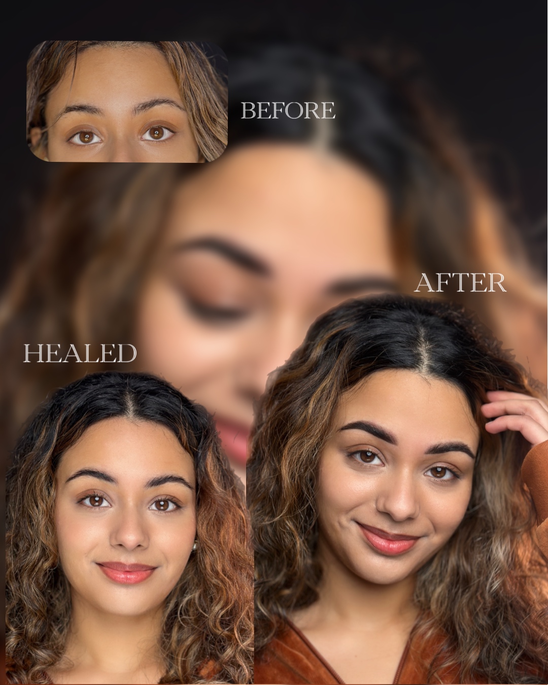 Using a specialized tool, the artist gently deposits the pigment into the upper layers of the skin. This step is done with care to create the soft, powdery, gradient effect. After the procedure, the eyebrows appear brighter and fuller, but they will heal to be about 30-50% lighter, depending on your skin type, resulting in a beautiful, natural look.